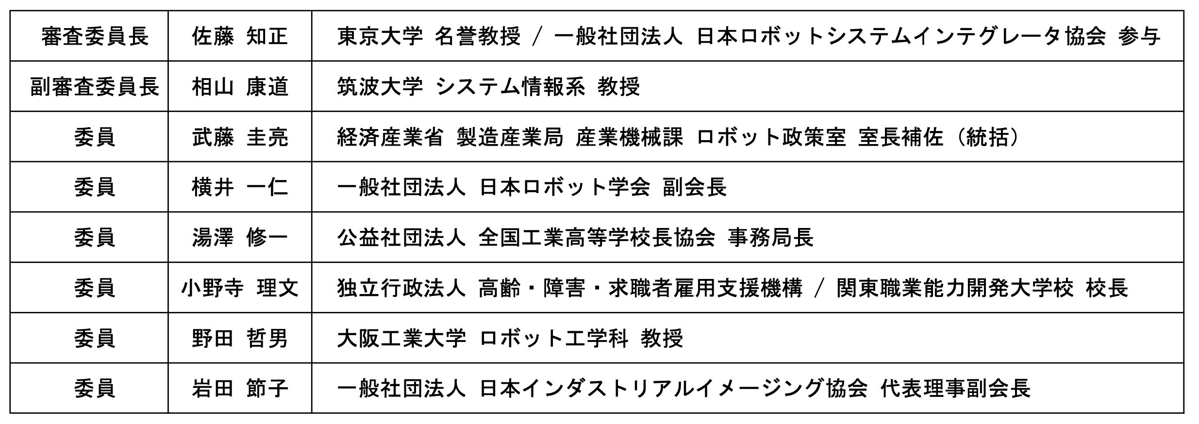 (今:技術の組み合わせが価値を生む時代) “スマホが世の中を変えた“こと、そして、”多様なアプリの数多い出現など、その技術進歩の驚くべきスピード“は皆様実感されておいでのとおりです。 このような、“技術が世の中を変える時代”、”技術進歩が驚くほど速い時代“は、新しい価値が技術の組み合わせで創出されることに由来しています。具体的に説明しますと、電話と無線通信の組み合わせが、スマホを生みました。 中古物品販売サービスとスマホ通信が、メルカリを生みました。このように、今は、多くの技術が世の中に存在しており、その組み合わせで、どんどん新しい価値が生み出される時代となっているのです。 組み合わせ価値の時代では、組み合わせをトライする人の数が、全体の成功率を高めます。 ある一つの組み合わせトライの成功する確率が一定であと仮定すると、一人の人の数がトライするより、1000人の人がトライをするほうが、全体としての成功確率は、1000倍にあがるのです! (多くの若い人のアイデアが大事) 組み合わせで価値が創出される時代にあっては、トライする人の数とともに、若い人の斬新なアイデアが非常に重要となります。 古い頭によるアイデア、過去の成功体験べったりのアイデアのような、年寄りのこだわり発想はだめなのです。といいますのは、 1)今は、だれも経験したことのない新しい時代を迎えていますし、 2)過去のアイデアでは、過去の失敗の轍(わだち)にはまり、 それを克服することができないからです。年寄の頭は、これまでの経験で大部分うまっています。若い人の頭は、この新しい時代を先入観なく肌で感じ、その時代を生き抜く、十分な将来時間を保証する身体に裏付けられています。新しいアイデアを生む可能性に満ちているのです。過去の経験がないだけ、何物にもとらわれない斬新なアイデアが生めるのです。旧来のアイデアでは、これまでぶちあたっていた壁を乗り越えることができません。新しいアイデアが必須なのです。 (ロボットアイデア甲子園の意義) ロボットアイデア甲子園では、このような若い人の斬新なアイデアを求めています。実は、ロボットアイデア甲子園は、単にアイデアを出すだけの機会ではありません。アイデアを考え、それを発表してもらう場です。その意義を次に説明します。 そのアイデアが素晴らしいものであった場合、世の中の人は、それをほおってはおきません。わが社に就職して欲しいというオファーがくるかもしれません。そのアイデアをぜひ、実用化することを考させて欲しいというオファーが来るかもしれません。もし、このコンテストに入賞し、経産産業局長賞などがもらえたら、それを、履歴書に書いてください。「何か」をもった「人物」であると、一目置かれ、評価が上がること、必定です。 その一方で、ロボットアイデア甲子園では、魅力あるプレゼンの仕方を、皆様にお伝えしています。そこでは、『実は、ロボットアイデア甲子園は、科学技術による社会変革 (科学記述イノベーション)活動の実践を通じた教育の機会である (科学技術イノベーション人材教育の場)という認識』のもと、ご自身のアイデアを、 a)どのようにすれば先鋭化できるのかや、 b)どのようなスライドを作成して訴えれば、未了あるプレゼンになるのか、 のヒントを紹介しています。HPにもアップしてありますので、ぜひご覧ください。 (ロボットアイデア甲子園への参加のお誘い) 以上のように、ロボットアイデア甲子園は、“単なる思い付きアイデアを出す機会“ではなく、あなたの“技術で世の中を変革する活動能力のアピールの場“であるとともに、あなたが、こらからの科学技術の時代を生きていくための学びの場“なのです。 ぜひとも、若い頭脳と身体をもった多くの方々の参加を、お願いいたします。そして、すばらしいアイデアを思いつき、その魅力的な発信を通じて、自らをアピールし、科学技術の時代を生き抜く力を養ってください。